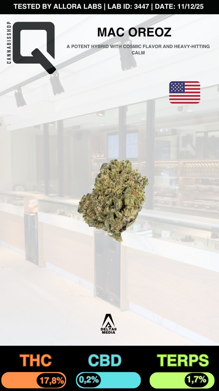 MAC Oreoz is a decadent, high-impact hybrid that blends the best of two elite strains into one deeply satisfying experience. With its complex flavor, knockout strength, and rich visual appeal, it’s a top-shelf selection for connoisseurs and heavy hitters alike. Perfect for unwinding, melting stress, or simply indulging in a cosmic-level smoke.